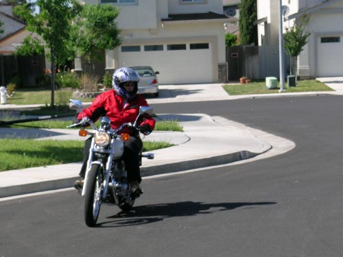 Sadly, the diet soda addict in me understood where she was coming from (minus the attitude and calling him a moron.) $1.20 for a bottle of water or $1.20 for a bottle of whatever soft drink his little heart might desire. Given the choice, I know I wouldn’t be getting the healthier choice. Yay for a clean kitchen! Double yay that someone else cleaned it for me while I was out! If I had the stuff to make them, I’d make the Boy some brownies in appreciation. Of course, that would mess the kitchen up again. But dammit, now I want brownies. Thumper at 8:15 PM Comments (4) | Trackback (0) May 08, 2006 Little girl, in a sing-song voice, as she skipped into the Walmart’s McD’s today: I get to eee-eeat, I get to eeee-eeeeat! This begs the question, is eating not an every day occurrence for this child? She didn’t look like she was starving, but she was on the thin side. A little boy trailing behind her didn’t seem as happy. Perhaps it was not his turn to have lunch? Or maybe it was like what runs through my mind on a day when my DDAVP runs out extra early and I’m bolting for the nearest restroom. I get to peeeeee, I get to peeee-eeeee! Oh, and in other news, people in CA need to doubly watch out. The Boy got his M1 endorsement to his license today. I might even let him ride my bike. If it ever gets delivered. Thumper at 6:38 PM Comments (6) | Trackback (0) May 09, 2006 The Honda dealership’s definition of a “thing” = their delivery truck. I suppose it might be a little difficult to deliver a 300+ bike without the truck. Sure, someone could have ridden it over for me, but truthfully, I want to be the one to rack up the first 20 miles. Even if it is in a parking lot. :::waiting impatiently until Thursday::: Thumper at 8:39 PM Comments (10) | Trackback (0) May 11, 2006 Wheeeeeeeeeeee! ![]() ![]() ![]() ![]() ![]() ![]() ![]() Click to biggify Thumper at 5:42 PM Comments (27) | Trackback (0) May 12, 2006 Happiness is finding the perfect new leather motorcycle jacket on eBay for about $300 less than it would cost in a store. ![]() ![]() Happiness Undone is when it gets here and it turns out to be way too small, even though it's technically the "right" size. :::cries::: I either need to lose a whole lot of inches, or stick it back on eBay. Incentive, perhaps...? It is a winter weight kinda thing... Hmmmm... Thumper at 9:41 PM Comments (11) | Trackback (0) May 13, 2006 All right...proof that I wind up at the WalMart McD’s way too often...I headed out for the library, where I intended to sit and pretend I was working while I was actually just typing nonsensical crap (aka blogging), and found myself turning at the street which would divert me from heading to the library and would deliver me to the parking lot of the local WalMart. I drove there on autopilot. But no, I did not go in and eat at McDonald’s. I did not go in and get a soft drink to refill 52 times. I did, however, park long enough to drop a quarter into the soda vending machine, because evidently the mere sight of WalMart makes me thirsty. One can of Sam’s Choice Diet Cola, and I was back in the car, pointed in the right direction. And I am now at the library, fully engaged not working. Instead I am sitting here, typing away about how I went and bought myself a cheap assed can of knock-off Coke, because I frankly cannot get my brain to engage and write anything work-worthy. I have not written anything work-worthy in over a month, I think. I have been so focused on reading the DMV motorcycle handbook and reading books about motorcycles, and studying safety tips, and looking at bikes online and surfing through forums about biking online that I simply did not even think about work. At least now I’m thinking about it. I’m not doing it, but I’m thinking about it. I’m also thinking about trolling the book shelves here for stuff on motorcycling that I may have overlooked before. I’m eyeing a magazine on the rack to my immediate right. Cycle World. I’m pondering how long it will be before I’m comfortable enough to venture off of the neighborhood side streets and into real traffic, and then how long it will be before I’m ready to ride the bike over here instead of my spiffy topless car. Oh no, I will not forget about my spiffy topless car. I love my spiffy topless car. And yes, the jacket is multicolored gaudy, but He-Who-Stopped-Blogging-Because-He’s-Paranoid (Murf) is right, I am a gaudy kind of person. I love bright colors and I own at least 10 tie-dyed t-shirts. I would paint my car a vivid metallic purple if I thought it would look marginally good and it it wouldn’t cost a small fortune. And yeah, I really did want to dress a fledgling rock band in purple and gold satin shirts. When I was 12. I still love purple and gold, and if I found the right thing, I’d still wear it. Oddly enough, I’d drive the bright shiny car and I’d wear all the bright shiny things and then think “Stop looking at me! Why are you people looking at me?!?” I think I am going to hang onto that gaudy motorcycle jacket—last night I was going to stick it back on eBay and try to get back what I paid for it (which, thankfully, wasn’t much)--but now I think I’m going to keep it. If I lose the amount of weight I want to, it might fit. It might not, to be honest, because even at my fittest I’m not a twig, but it might. And I loves it, I do. That jacket just might get me back on track diet-wise, and might get me to the gym more often than I’ve been lately (-sigh- excuses: between a very sore back and my pre-occupied mind, I have not been lately. Yes, those are excuses and not valid reasons.) And oh! Once I’m brave enough, I can ride my bike to the gym! Yep. One track, one track, one track... Thumper at 3:02 PM Comments (9) | Trackback (0) May 14, 2006 It's 90+ degrees outside. The top is down on the convertible. I'm wearing white jeans. You'd think that at my age I would know that particular combination means munching o